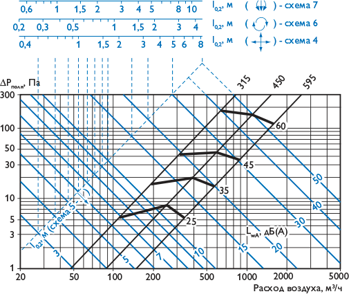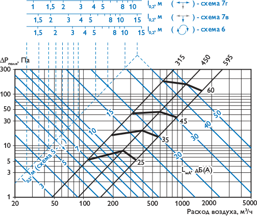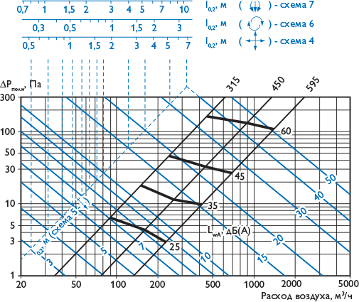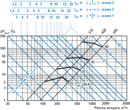 LwA=25 дБ(А) LwA=35 дБ(А) LwA=45 дБ(А) LwA=60 дБ(А)