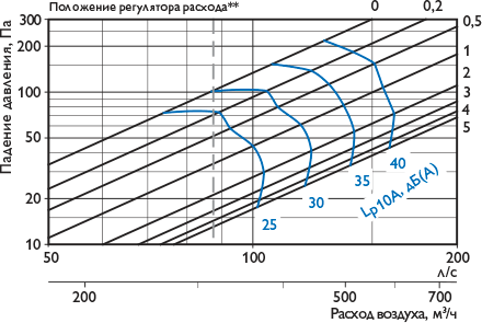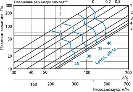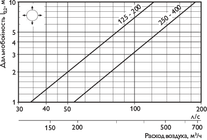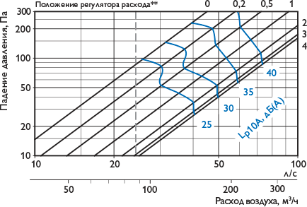* Аэродинамические и аккустические характеристики диффузоров приведены для воздуховыпускной щели высотой 25 мм.